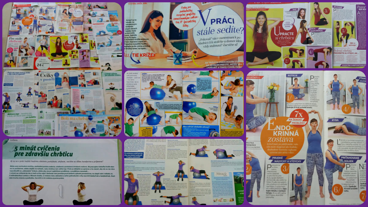 Naša hlavná fyzioterapeutka Mgr.Barbora Krchňavá Hanicová Dip.fyz. pravidelne publikuje v rôznych časopisoch, magazínoch zmeraných na zdravie. Radí, zostavuje cvičebné série na mieru pre každý problém s pohybovým aparátom.
