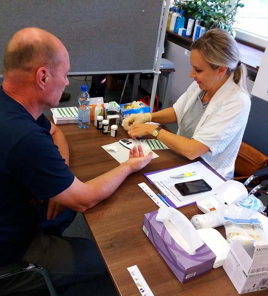 na meranie cukru, triglyceridov, cholesterolu, tlaku, pulzu, špeciálnou váhou meriame tuk v tele, svalovú hmotu, kľudový metabolizmus, viscerálny tuk, BMI, od partnerov máme vždy zapožičané kvalitné prístroje na meranie vnútroočného tlaku či dioptrií